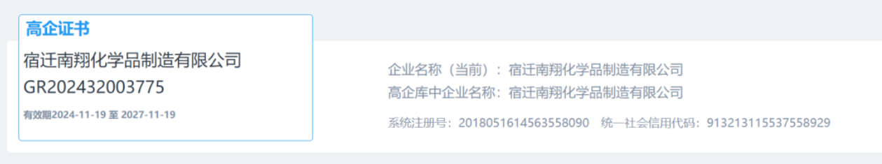 近日,從江蘇省高新技術(shù)企業(yè)認(rèn)定管理工作領(lǐng)導(dǎo)小組傳來喜訊,宿遷南翔化學(xué)品制造有限公司成功入選江蘇省認(rèn)定機(jī)構(gòu)2024年認(rèn)定報備的第二批高新技術(shù)企業(yè)備案名單 !這一殊榮的獲得,不僅是對南翔化學(xué)品在科技創(chuàng)新領(lǐng)域的高度認(rèn)可,更是公司發(fā)展歷程中的一個重要里程碑。