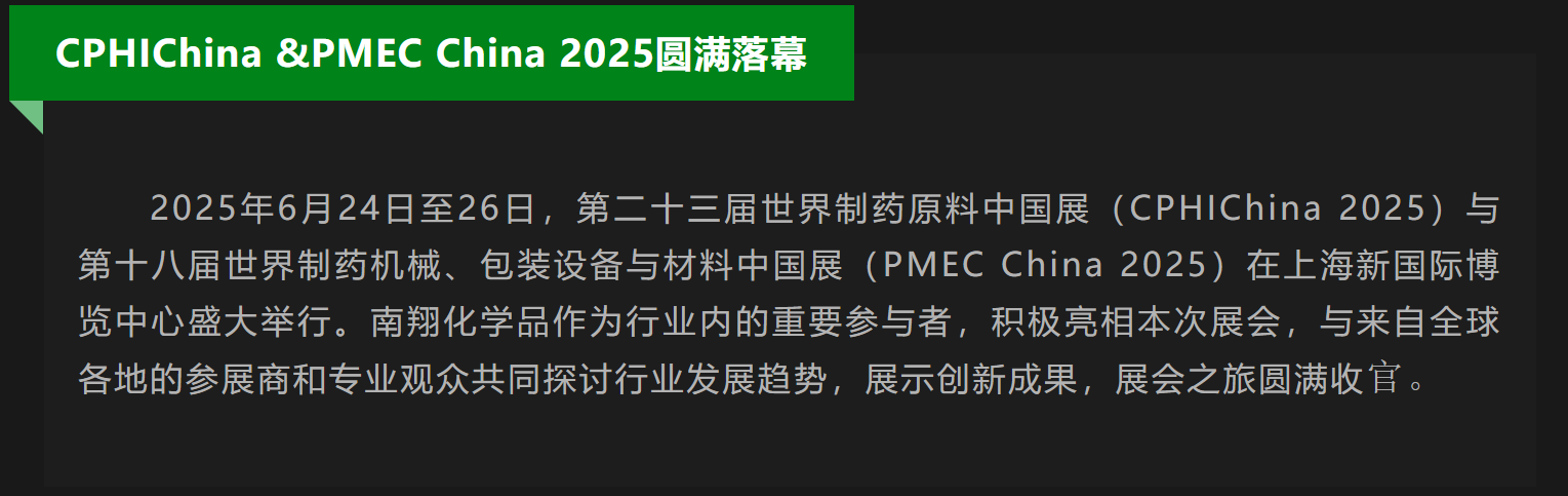 展望未來,南翔化學(xué)品將繼續(xù)秉持創(chuàng)新驅(qū)動、質(zhì)量為本的發(fā)展理念,加大研發(fā)投入,不斷提升產(chǎn)品品質(zhì)和服務(wù)水平,積極參與國內(nèi)外市場競爭,為推動制藥及電子化學(xué)品行業(yè)的發(fā)展貢獻更多力量。期待下一次展會,南翔化學(xué)品能帶來更多驚喜!